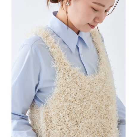 毛足の長いシャギーヤーンを使用したニットジレ。