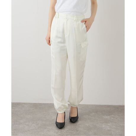 トレンドのワークパンツは、カジュアルになり過ぎないように、艶のあるサテン生地を採用しました。