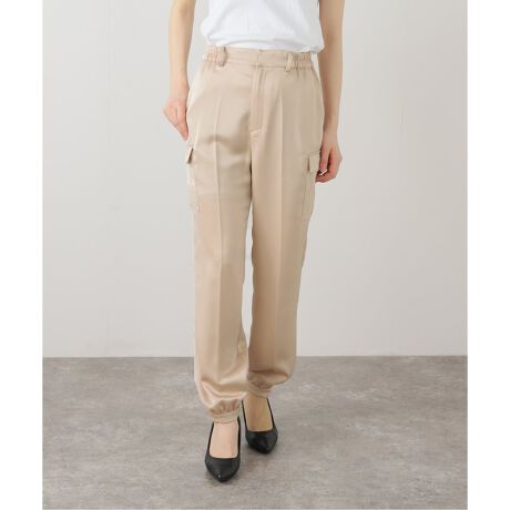 トレンドのワークパンツは、カジュアルになり過ぎないように、艶のあるサテン生地を採用しました。