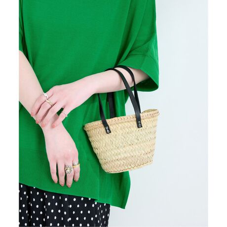 細身の革ハンドルをあわせた上品なかごバッグ。