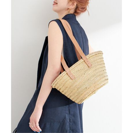 モロッコの椰子の葉を小さめなかごバッグに編み上げました。素材の椰子は柔らかで軽く、つるっとした質感。肩掛けもできます。ひとつひとつ丁寧に手作業で編んでいます。