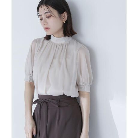ハイネックシアーボリュームブラウス