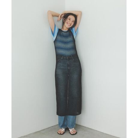 プラスワンするだけで今っぽい着こなしに見せてくれるレイヤード仕様のニットワンピースです。アメスリのような肩幅やメッシュ編みが涼しげで、今の気分にぴったりなカジュアル感を演出。肌に沿う編地が女性らしいシルエットを出し、サイドスリット入りで足さばきの良さと抜け感もプラス。バックスタイルはレースアップデザインにして、後ろ姿まで抜かりないディテールに。中はタンクやキャミソール、Tシャツ×デニムパンツと重ねるだけで楽しめます。<素材>ペーパータッチのドライな糸でざっくりとメッシュ編みに仕上げています。<詳細>仕様・開閉なし裏地・なし透け感・あり / 光沢・なし / 伸縮性・あり生地の厚さ・普通※モデルの着用画像の場合、光の当たり具合により、実際の色味と異なって見えることがございます。色味は、商品単体の画像をご参照ください。