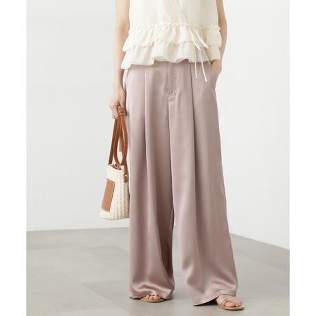 揺れ感のあるワイドシルエットでカジュアルに使えるパンツ。前開きや箱ポケットを付けており、きちんと見えする仕様に。TシャツなどのカジュアルアイテムとのMIXコーデも今年らしくておすすめです。<素材>厚手なサテン素材を使用。今季トレンドのツヤ素材です。<詳細>仕様・前カン&ファスナー裏地・なし透け感・なし / 光沢・ややあり / 伸縮性・なし生地の厚さ・普通※モデルの着用画像の場合、光の当たり具合により、実際の色味と異なって見えることがございます。色味は、商品単体の画像をご参照ください。