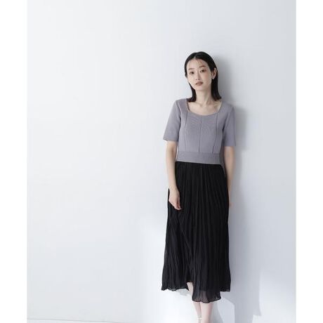 胸元のライン切り替えを入れることで、上半身をすっきり見せてくれるニットドッキングワンピースです。デコルテラインがスクエアネック開きなので、すっきりとした首まわりを演出。ウエストはぺプラムシルエットでお腹まわりをほどよくカバーします。軽やかなシフォン素材を使用したスカート部分は、消しプリーツデザインで品の良さをキープしながら、暑い時期にも着ていただけます。<素材>身頃はドライタッチで肉感のあるハイゲージニット。スカートは軽やかなシフォンジョーゼット素材を使用しています。<詳細>仕様・開閉なし裏地・あり透け感・ややあり / 光沢・なし / 伸縮性・あり生地の厚さ・普通※モデルの着用画像の場合、光の当たり具合により、実際の色味と異なって見えることがございます。色味は、商品単体の画像をご参照ください。