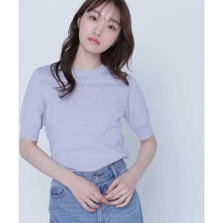 Tシャツライクに使えるプレーンな形のリブニット。セットインで動きやすくONでもOFFスタイルでも合わせやすいサイズです。ジャンスカやジレなどのレイヤードにも使いやすいデザイン。首元のシアー切り替えがポイントで、クルーネックでもシアーな抜け感が涼しげに着ていただけます。<素材>フラットなハイゲージの総針編み×シアーな糸でライン切り替えを入れた素材です。<詳細>仕様・開閉なし裏地・なし透け感・なし / 光沢・なし / 伸縮性・あり生地の厚さ・普通※モデルの着用画像の場合、光の当たり具合により、実際の色味と異なって見えることがございます。色味は、商品単体の画像をご参照ください。