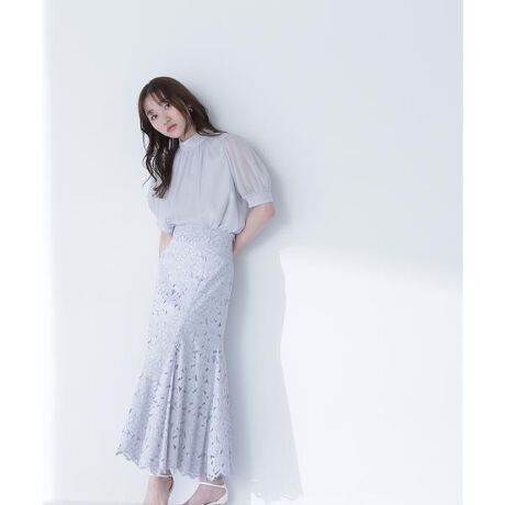 これからの季節にぴったりな素材を使用した、配色が引き立つ花柄のレーススカート。レースの奥行きをいかすよう裏地に色差をつけています。裾はレースによるスカラップ始末で高見えに。続きのハイウエストデザインなのですっきりと着ていただけます。<素材>花のフチが配色になった夏らしいタッチのレース素材を使用しています。<詳細>仕様・左ファスナー裏地・あり透け感・なし / 光沢・なし / 伸縮性・なし 生地の厚さ・普通※モデルの着用画像の場合、光の当たり具合により、実際の色味と異なって見えることがございます。色味は、商品単体の画像をご参照ください。