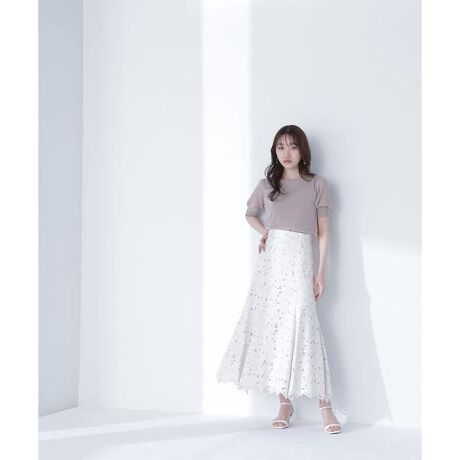 これからの季節にぴったりな素材を使用した、配色が引き立つ花柄のレーススカート。レースの奥行きをいかすよう裏地に色差をつけています。裾はレースによるスカラップ始末で高見えに。続きのハイウエストデザインなのですっきりと着ていただけます。<素材>花のフチが配色になった夏らしいタッチのレース素材を使用しています。<詳細>仕様・左ファスナー裏地・あり透け感・なし / 光沢・なし / 伸縮性・なし 生地の厚さ・普通※モデルの着用画像の場合、光の当たり具合により、実際の色味と異なって見えることがございます。色味は、商品単体の画像をご参照ください。