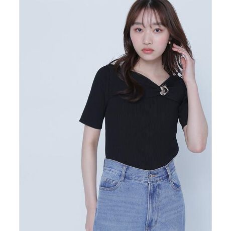 ONでもOFFスタイルでも使えるデザインのリブニット。今季トレンドのブローチを付けており、取り外しが可能。フロントはクロスしたディテールが映え、首元にポイントと抜け感を出してくれます。ボディは体に優しくフィットしながら細見えするシルエットです。<素材>ドライタッチでストレッチの効いたハイゲージのリブ編みニットです。<詳細>仕様・開閉なし裏地・なし透け感・なし / 光沢・なし / 伸縮性・あり生地の厚さ・普通※モデルの着用画像の場合、光の当たり具合により、実際の色味と異なって見えることがございます。色味は、商品単体の画像をご参照ください。