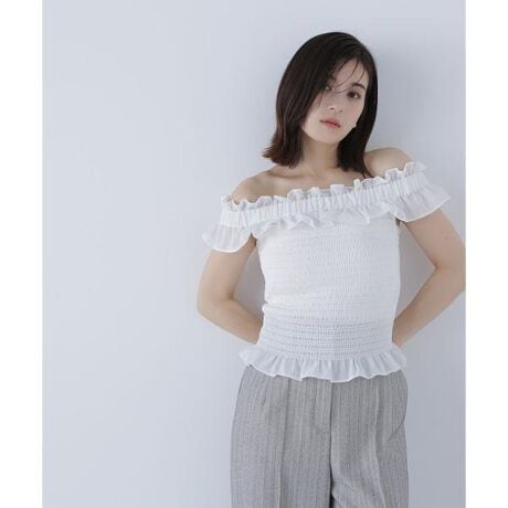 フリルシャーリングオフショルブラウス