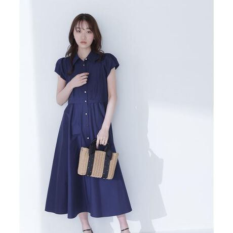 セットアップを着用しているようなレイヤードデザインのシャツワンピースです。きちんとしたシャツ襟なので、第一ボタンを開閉すると雰囲気が変わるアレンジも可能。袖は構築的なパフスリーブにし、甘くなりすぎないデザインに。ころんとしたゴールドカラーの釦をアクセントに、ウエスト上で切り替えたシルエットで脚長効果を期待できます。<素材>ハリ感のある夏らしいブロード素材を使用しています。<詳細>仕様・前ボタン裏地・なし透け感・なし / 光沢・なし / 伸縮性・なし生地の厚さ・普通※モデルの着用画像の場合、光の当たり具合により、実際の色味と異なって見えることがございます。色味は、商品単体の画像をご参照ください。
