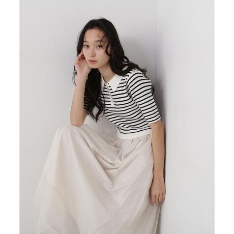 ポロニットとチュールスカートの異素材ドッキングワンピースです。ポロ襟のカジュアルさとチュールスカートのレディなバランスがポイント。ニットワンピースはウエストまわりが伸びるので窮屈感がなく、裏地付きなので透けを気にしないで着ていただけます。1枚で着映えるオフ×ブラック合わせのボーダーと、ネイビー×ベージュのバイカラーはトラッドでトレンドを感じさせる2色展開です。<素材>スッキリで目面のキレイなニットと柔らかさとハリ感のバランスの良いチュール素材を使用しています。<詳細>仕様・前ボタン裏地・あり透け感・なし / 光沢・なし / 伸縮性・あり生地の厚さ・普通※モデルの着用画像の場合、光の当たり具合により、実際の色味と異なって見えることがございます。色味は、商品単体の画像をご参照ください。