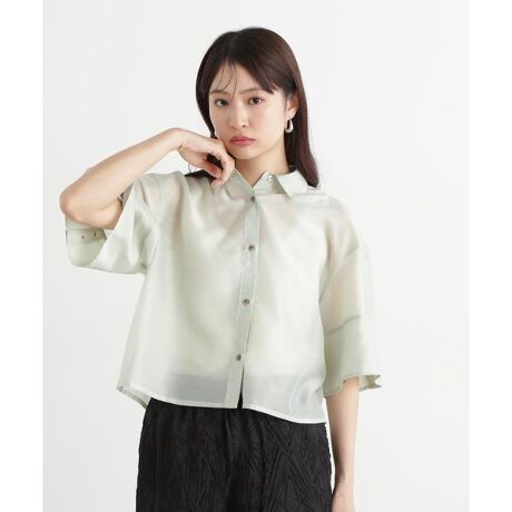 今年らしいシアー素材がポイントのシャツは、前ボタンを全て留めてトップスにも、前を開けて羽織にも使えるデザインです。シアー感を活かすため、ポケットなどのディテールを無くしてミニマルなデザインに仕上げています。二の腕をカバーするワイドカフススリーブでトレンド感をプラス。配色を効かせた貝調ボタンがポイントです。クロップド丈なのでハイウエストのボトムス合わせがおすすめです。<素材>トレンドの透け素材を使用。滑らかで肌当たりも心地よさもありつつ、襟やカフスはシャキッとした素材感です。<詳細>仕様・前ボタン裏地・なし透け感・あり / 光沢・なし / 伸縮性・なし生地の厚さ・薄手※モデルの着用画像の場合、光の当たり具合により、実際の色味と異なって見えることがございます。色味は、商品単体の画像をご参照ください。