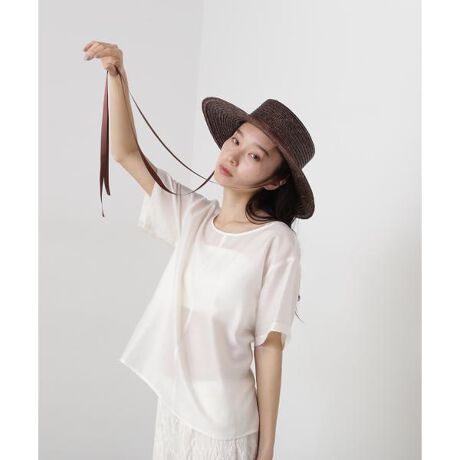 程よい背中開きデザインがヘルシーな肌見せを叶える1枚。前から見るとシンプルなTブラウスですが、後ろはデザインが効いているバックシャンのため、前後で違う表情を楽しめます。<素材>トレンドのシアー素材を使用。ほんのりワッシャー感があり風合いのある生地です。<詳細>仕様・開閉なし裏地・なし透け感・あり / 光沢・ややあり / 伸縮性・なし生地の厚さ・薄手※モデルの着用画像の場合、光の当たり具合により、実際の色味と異なって見えることがございます。色味は、商品単体の画像をご参照ください。