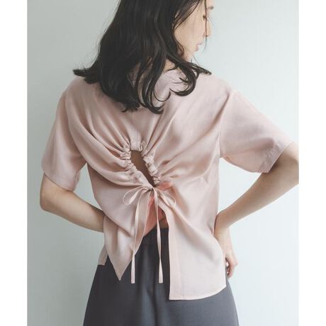 程よい背中開きデザインがヘルシーな肌見せを叶える1枚。前から見るとシンプルなTブラウスですが、後ろはデザインが効いているバックシャンのため、前後で違う表情を楽しめます。<素材>トレンドのシアー素材を使用。ほんのりワッシャー感があり風合いのある生地です。<詳細>仕様・開閉なし裏地・なし透け感・あり / 光沢・ややあり / 伸縮性・なし生地の厚さ・薄手※モデルの着用画像の場合、光の当たり具合により、実際の色味と異なって見えることがございます。色味は、商品単体の画像をご参照ください。