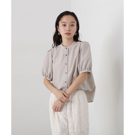 袖の切り替えを利用して膨らみを出したパフスリーブデザインのブラウスです。貝調の配色ボタンをポイントに、襟はバンドカラーデザインで、ONにもOFFスタイルにも使えるきちんと見えするデザイン。スカートやパンツ合わせはもちろん、ジレやジャンスカとのレイヤードにも着ていただけます。<素材>サラリとしたドライタッチで麻調のチラチラした見え方が爽やかな印象の素材を使用。優しいハリ感があり袖や衿の形をキレイに引き立てる素材感です。<詳細>仕様・前ボタン裏地・なし透け感・ややあり / 光沢・なし / 伸縮性・なし 生地の厚さ・普通※モデルの着用画像の場合、光の当たり具合により、実際の色味と異なって見えることがございます。色味は、商品単体の画像をご参照ください。