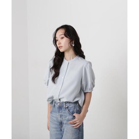 袖の切り替えを利用して膨らみを出したパフスリーブデザインのブラウスです。貝調の配色ボタンをポイントに、襟はバンドカラーデザインで、ONにもOFFスタイルにも使えるきちんと見えするデザイン。スカートやパンツ合わせはもちろん、ジレやジャンスカとのレイヤードにも着ていただけます。<素材>サラリとしたドライタッチで麻調のチラチラした見え方が爽やかな印象の素材を使用。優しいハリ感があり袖や衿の形をキレイに引き立てる素材感です。<詳細>仕様・前ボタン裏地・なし透け感・ややあり / 光沢・なし / 伸縮性・なし 生地の厚さ・普通※モデルの着用画像の場合、光の当たり具合により、実際の色味と異なって見えることがございます。色味は、商品単体の画像をご参照ください。