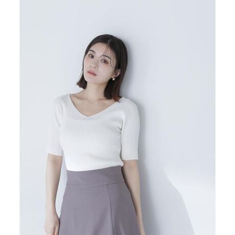 ONでもOFFスタイルでも使えるデザインのワイドリブニット。アームホールが襟端につながっているので肩線がなく、肩まわりが華奢見えします。袖はやさしいフォルム感があり二の腕をカバー。襟はデコルテをキレイに見せるVネックで、ボディは体に優しくフィットしながら細見えするシルエットです。<素材>ストレッチの効いたハイゲージの中太リブ編みニットです。<詳細>仕様・開閉なし裏地・なし透け感・なし / 光沢・なし / 伸縮性・あり生地の厚さ・普通※モデルの着用画像の場合、光の当たり具合により、実際の色味と異なって見えることがございます。色味は、商品単体の画像をご参照ください。