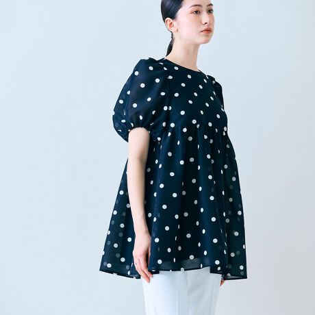 ・袖には裏地を付けず、ギャザー分量を多く入れることでふんわりとしたフォルムと程よい透け感をプラス。