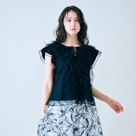 ・たっぷりと生地を使用して作り出されたボリューム感に心惹かれるラッフルブラウス