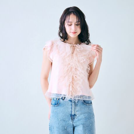 チュールフリルブラウス