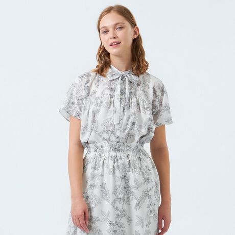 ドローイングフラワーボウタイブラウス