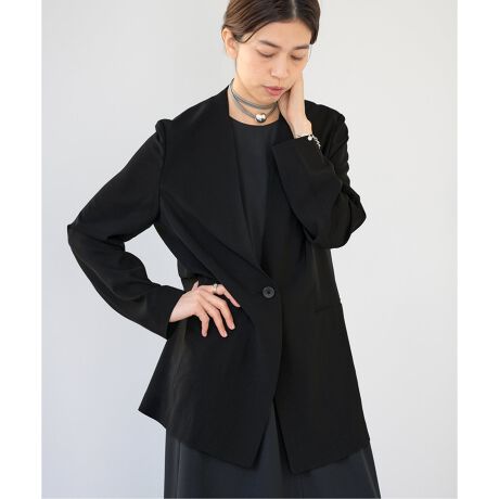 カーディガン感覚でさらりと羽織れるノーカラージャケット。