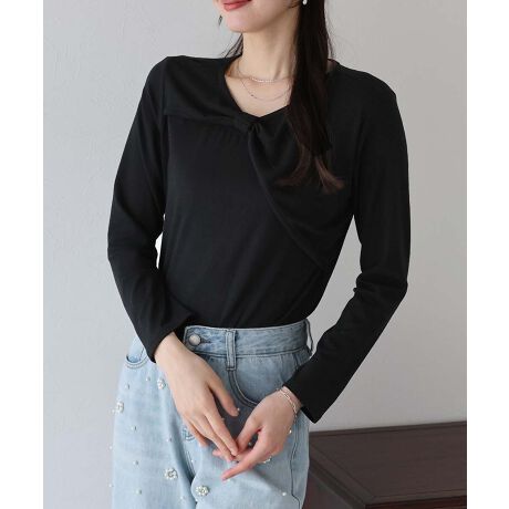 リボン×カットアウトで魅せる、抜け感たっぷりのレイヤード風カットソー