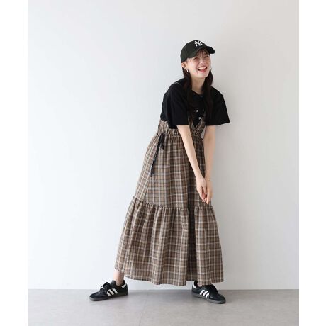 程よい透け感のチェック生地を使用した華やかなキャミワンピース