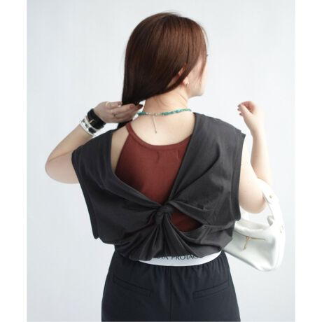 バックスタイルに遊び心を取り入れたノーズリーブのカットソー。