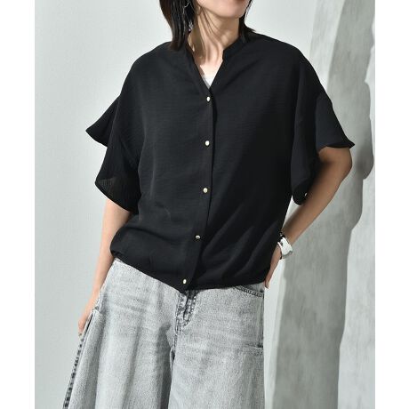 これからのシーズンに嬉しいUV加工と接触冷感のメリット付き生地を使用し、キレイ目なブラウスに仕上げました。裾タックから生まれる優しいシルエットがデザインされた1枚。キーネックの開きがデコルテをすっきり見せてくれ、程よく女性らしさをプラスしてくれます。また気になる二の腕周りをソフトなフレアースリーブがカバーしてくれるのも嬉しいポイントです。ボトムを選ばない丈感で自然と着回しができ、オフィススタイルやデイリーにも活躍間違いなしです◎