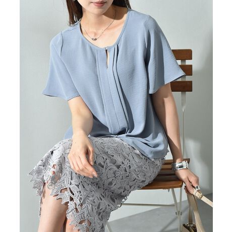 ナチュラルな素材感で肌触りの良いポリエステル生地を使用し、上品なタックデザインが目を惹くブラウス。さらにこれからのシーズンに嬉しいメリット付き(接触冷感・UV)です。フロントにさりげなくゴールドパーツをあしらいました。ネックレスなどアクセサリーが無くても顔回りを華やかに演出してくれます。身体から程よく離れるサイジングで体型カバーにもなり、シワになりにくく透け感の少ない素材なのもおススメなポイント。シンプルなデザインなのでオフィススタイルやちょっとしたお出かけにも活躍するブラウスです。