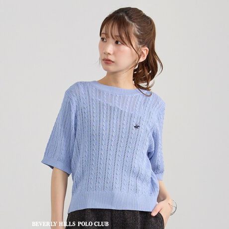 【BEVERLY HILLS POLO CLUB】ワンポイント刺繍ケーブルニット