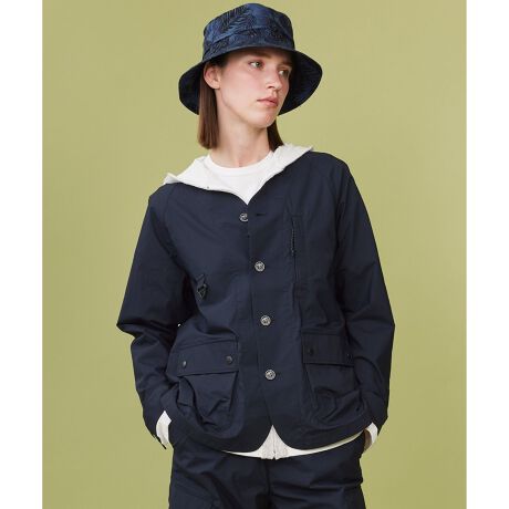 ■素材経糸に30番手、緯糸に40番手を使用し、麻織物のような凹凸感が出るように織り上げられたブッチャー素材を採用。リーフ柄プリントを施した、夏らしい開襟シャツです。しっかりとした生地感で通気性や吸水性が良く、サラッとした肌触りも特徴的です。