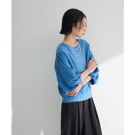 タックを加えたふんわりボリューム袖がキュートなプルオーバー。落ち感のあるオーバーシルエットに裾のジップでカジュアルなアクセントをプラスしました。前後どちらをフロントにしても着こなせる便利な2WAYデザインです。肌あたりのよい裏パイル×さっぱりとした布帛素材で春夏シーズンにも快適にご着用いただけるおすすめアイテムです。透け感[ややあり]