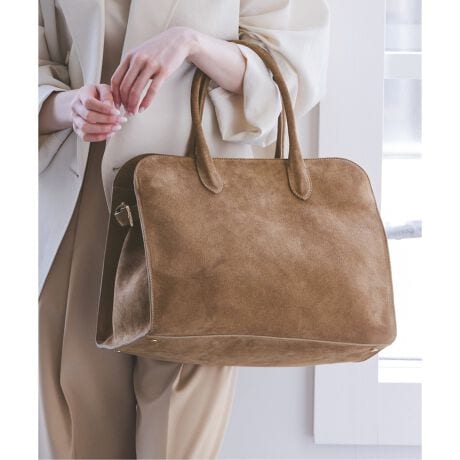 上品なトープカラーのスエードを使用したボストンバッグ。