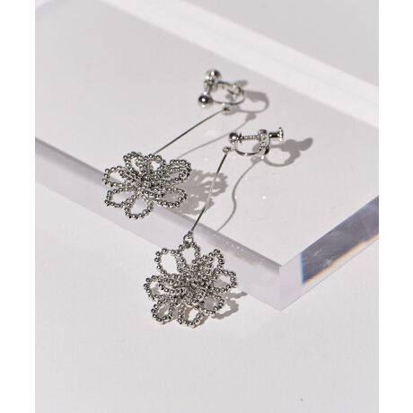 ゆらゆらと揺れ動くキュートなニュアンスが特徴的なデザインイヤリング。ビーズで表現したフラワーモチーフに細いメタルバーを合わせたおしゃれなデザインです。存在感がありながらも軽量仕上げで扱いやすく、甘すぎないのも嬉しいポイント。フェミニンはもちろん、ハンサムライクなスタイルにあえてプラスするのもおすすめです。※モデル着用画像は、光の当たり具合で色味が違って見える場合がございます。※お使いのモニター環境によって商品の色味が違って見える場合がございます。