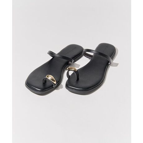 マットなフェイクレザーでシンプルに合わせられるデザインサンダル。リングトングのすっきりとした仕様で親指に光るメタルモチーフがスタイリッシュな印象です。甲にフィットするストラップのみの仕様ながら安定感があり、フラットソールで楽な履き心地なのもポイント。デイリーカジュアルに丁度よいおすすめのアイテムです。※モデル着用画像は、光の当たり具合で色味が違って見える場合がございます。※お使いのモニター環境によって商品の色味が違って見える場合がございます。