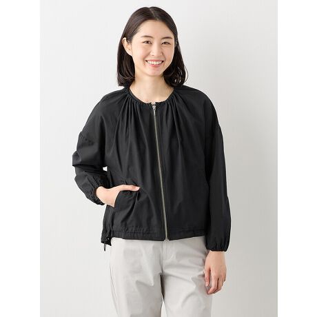[型番:6204022]程よいシアー感のある上品なコットングログランのブルゾン。衿元・袖口・裾にギャザーを施したふんわりしたシルエットのジップアップブルゾン。毎日のコーディネートに合わせやすい白と黒を用意しました。まだ寒さの残るこの時期から初夏まで活躍してくれるアイテムです。