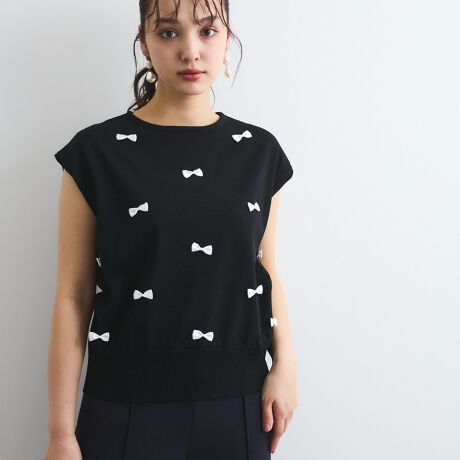 24年冬シーズンに大人気だったサテンリボンデザインのニットトップスが春夏デザインになって新登場です。
