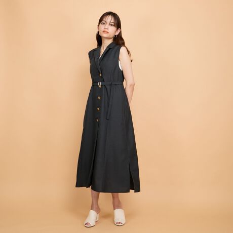 ウエスト位置高めで切り替えた、スタイルアップジレワンピースです。