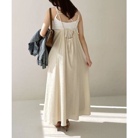 バックオープン リボン ロング キャミワンピース Freesia フリージア