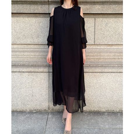 肩開きシアーロングワンピース