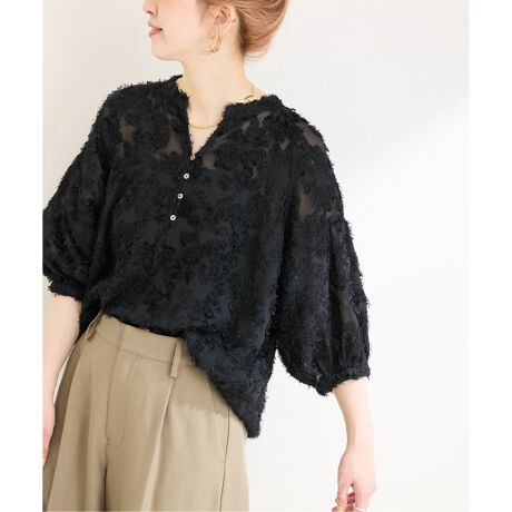 フラワーモチーフのジャカードブラウスに5分袖丈が登場!
