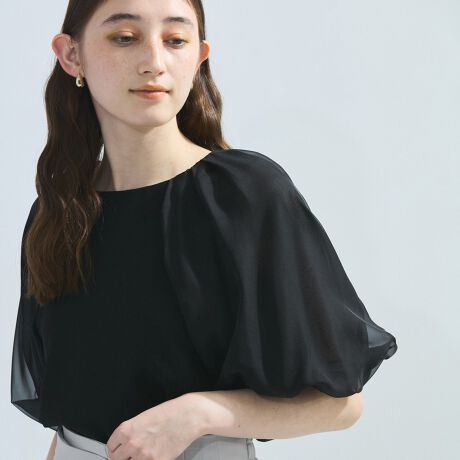 スリーブは程よく透け感があり、ボリュームデザインでも軽やかさとフェミニンな印象を加えます。