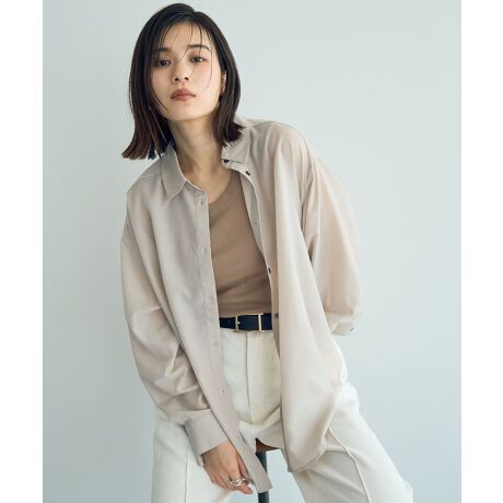 カーブを描くサイドスリットが女性らしい抜け感を演出する長袖シャツ。ゆったりとしたオーバーシルエットに長めのレングスがこなれ感たっぷりの1着です。シアー素材のライトな着心地も魅力的。シンプルなワンカラーでレイヤードアレンジにも最適なおすすめのアイテムです。透け感[ややあり]