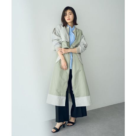 ツイル生地で仕立てたミリタリーライクなトレンチコート。キメ細かい糸で織られた生地は光沢感もあり、丈夫でありながらしなやかな印象もある経年変化を楽しめる生地感です。ガンパッチやフラップ、裾の配色を切替えた遊び心あるデザイン。背面にはウエストが絞れるドローコードを配し、スタイルに合わせたシルエットアレンジも可能です。オンするだけでで印象的なスタイリングが決まるおすすめのアイテムです。