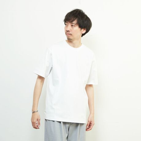 肩や胸辺りにゆとりを持たせながらもスタイリッシュに着用できるよう、裾幅は少し細くし着丈も若干短めにパターンメイクした絶妙なシルエットです。