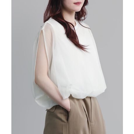 七分袖のシアートップス。
