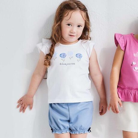 フリルレイヤードお花モチーフ天竺Tシャツ+ブルマセット(80~90cm)